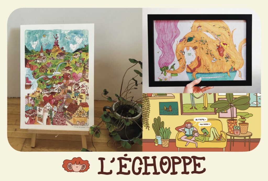 Tu aimes mon univers et tu as envie d’avoir un bout de mon art chez toi ? N’hésite pas à aller voir ma boutique en ligne et qui sais, je suis peut-être aussi en point de vente dans ta ville.